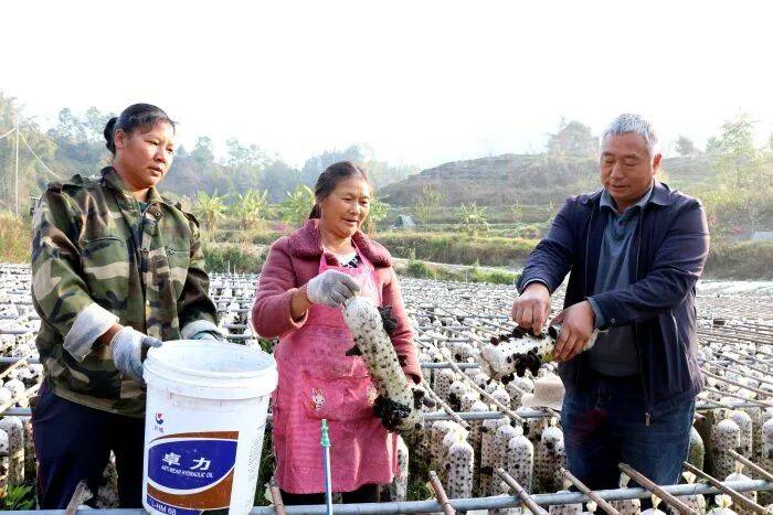 “以前菌棒要么外购要么散户自制,品质参差不齐,销路总受影响。”新寨村村民回忆道。这一困境的打破,始于2022年标准化黑木耳菌棒加工厂的建成。依托项目支持,村办加工厂为规模化种植筑牢根基,同时引进食用菌企业入驻,既提供全程技术指导,又实现从“田间”到“车间”的就地收购,彻底解决了种植户的后顾之忧。